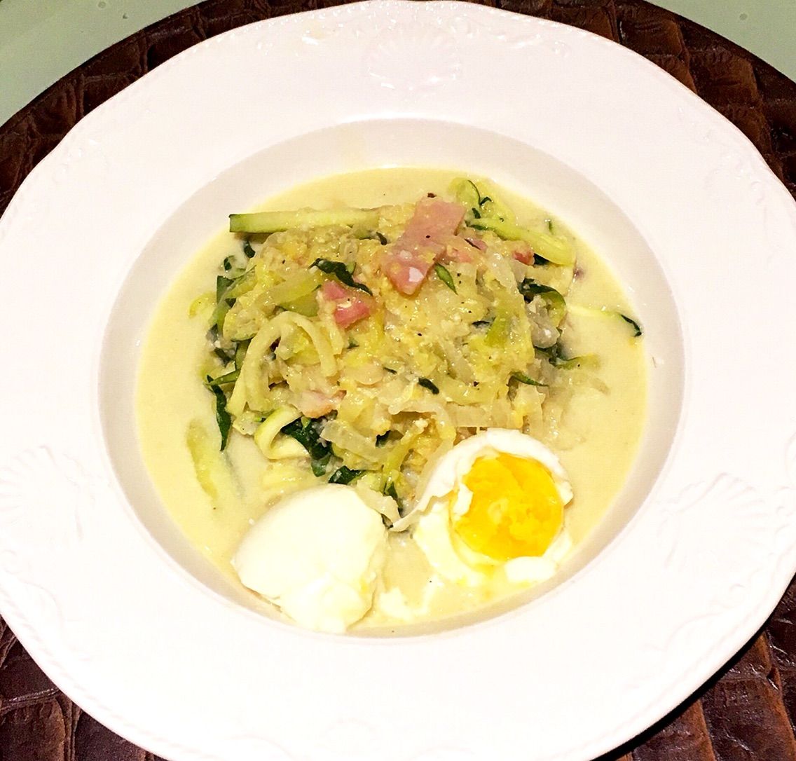 今回は夕食なのでベジヌードルでカルボナーラにしてみました。